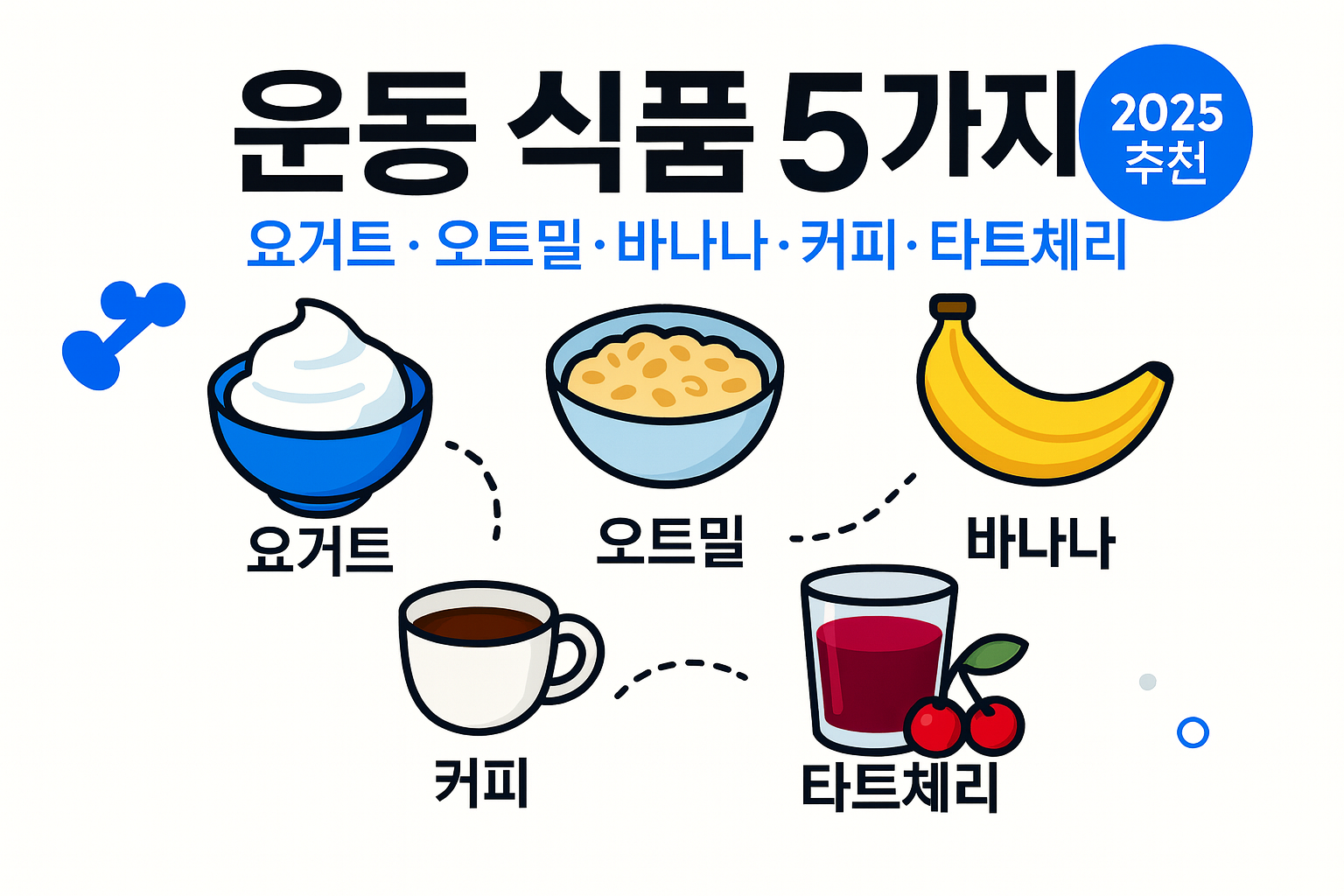 운동 성과는 **연료(탄수화물)·재료(단백질)·미세조정(카페인·폴리페놀)**의 밸런스에서 결정돼. 아래 5가지는 구하기 쉽고 근거가 탄탄한 실전템!