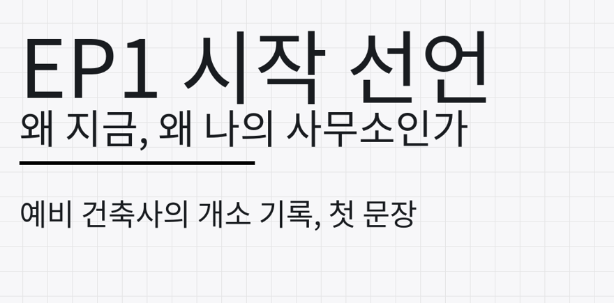 EP1. 시작 선언 — 왜 지금, 왜 나의 사무소인가